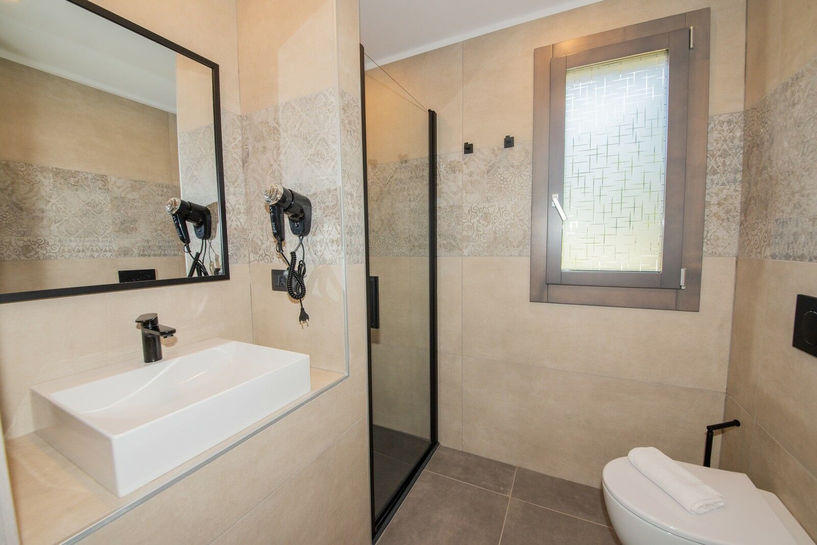 This elegant and modern villa spans two floors, comprising approximately 60 m² of functional luxury. On the ground floor, a spacious living area with fully equipped kitchen and satellite TV offers both comfort and style. A wooden staircase leads to the first floor, where you’ll find a stylish double bedroom and a twin bedroom, both with private balconies. The villa includes a private sauna and jacuzzi for moments of total relaxation. Completing the experience is a private garden with table and chairs. Perfect for elegant outdoor dining.